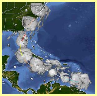 Nikdy v historii nepostihly USA během jediného roku dvě tak silné bouře. Nyní se jich v rozmezí pouhých šesti týdnů sešla celá čtveřice. Celá čtveřice také obsadila přední místa v žebříčku hurikánů sestaveném podle výše škod. Z tohoto pohledu je předstihl pouze hurikán Andrew. který v srpnu 1992 způsobil škody za 20,3 miliard dolarů. Tolik hovoří prostá statistická fakta, která jistě nepotřebují komentář.