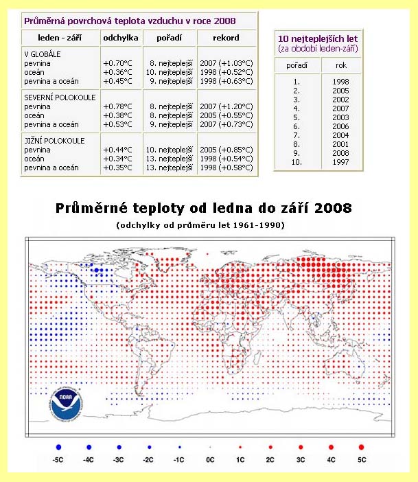 Podle předběžných propočtů amerického Národního centra pro klimatická data (National Climatic Data Center, NCDC) bylo prvních devět měsíců tohoto roku ve srovnání s dlouhodobým průměrem o 0,45°C teplejší. To znamená, že letošní rok je zatím devátý nejteplejší od počátku souvislých měření v roce 1880.