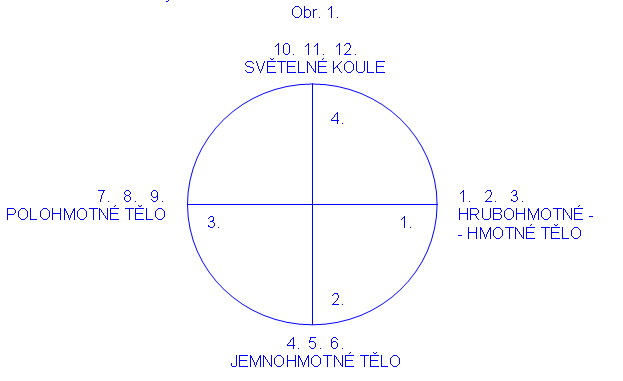 K výše uvedenému schématu zde nyní vyložíme význam čísel uvnitř kruhu – jsou toto stupně duchovních světů 1. – 4. Stvořitele nás všech a všeho prvotního a vně kruhu pak jsou jednotlivé dimenze 1. – 12.  Dimenze tyto jsou paralelními vesmíry, tedy stojí takto všude vedle sebe a pak jest v nich projevem život v daném místě a čase či nikoli. Dimenze tato třetí hmotná má prioritu zde na planetě Zemi vaší i naší milé především pak z důvodu tohoto, že Země jest živou knihovnou tohoto Vesmíru celého a to právě ve třetí dimenzi této. Též proto jest tato modrá planeta tak krásným místem ve Vesmíru tomto a věřte, že není vůbec dobré ničit ji svým počínáním tak, jak vy to činíte. Stáváte se pro ni pak takovým škodlivým hmyzem v této třetí dimenzi, od kterého pak ona chce se očistit, aby zase svobodně mohla dále dýchat. Poněvadž však jest vůlí Stvořitele nás všech a všeho prvotního vám, lidem, pomoci ve vývoji duchovním vašem jak jen to bude možné, jest zde brána v potaz i varianta postupného předimenzování vás, bytostí lidských ze třetí do páté dimenze, což spojeno by pak bylo s nenásilnou selekcí jednotlivých lidí, kteří potřebné vyšší vibrace mají a jejich předimenzováním do páté dimenze tak, že pro okolí jejich na první pohled nic by se neměnilo. Toto okolí jejich, tedy především další bytosti lidské bližní jejich pozemské, zůstaly by i nadále ve své třetí dimenzi a žily tak i nadále v poklidu tento život svůj. Jak napsáno již zde bylo, jest toto další z možných variant, jak k tomuto převibrování u vás dojíti může a jest připraveno ještě několik variant dalších. My však zde již toto nijak dále rozváděti nebudeme a pro dnešek psaní o dimenzích těchto hmotných uzavřeme.