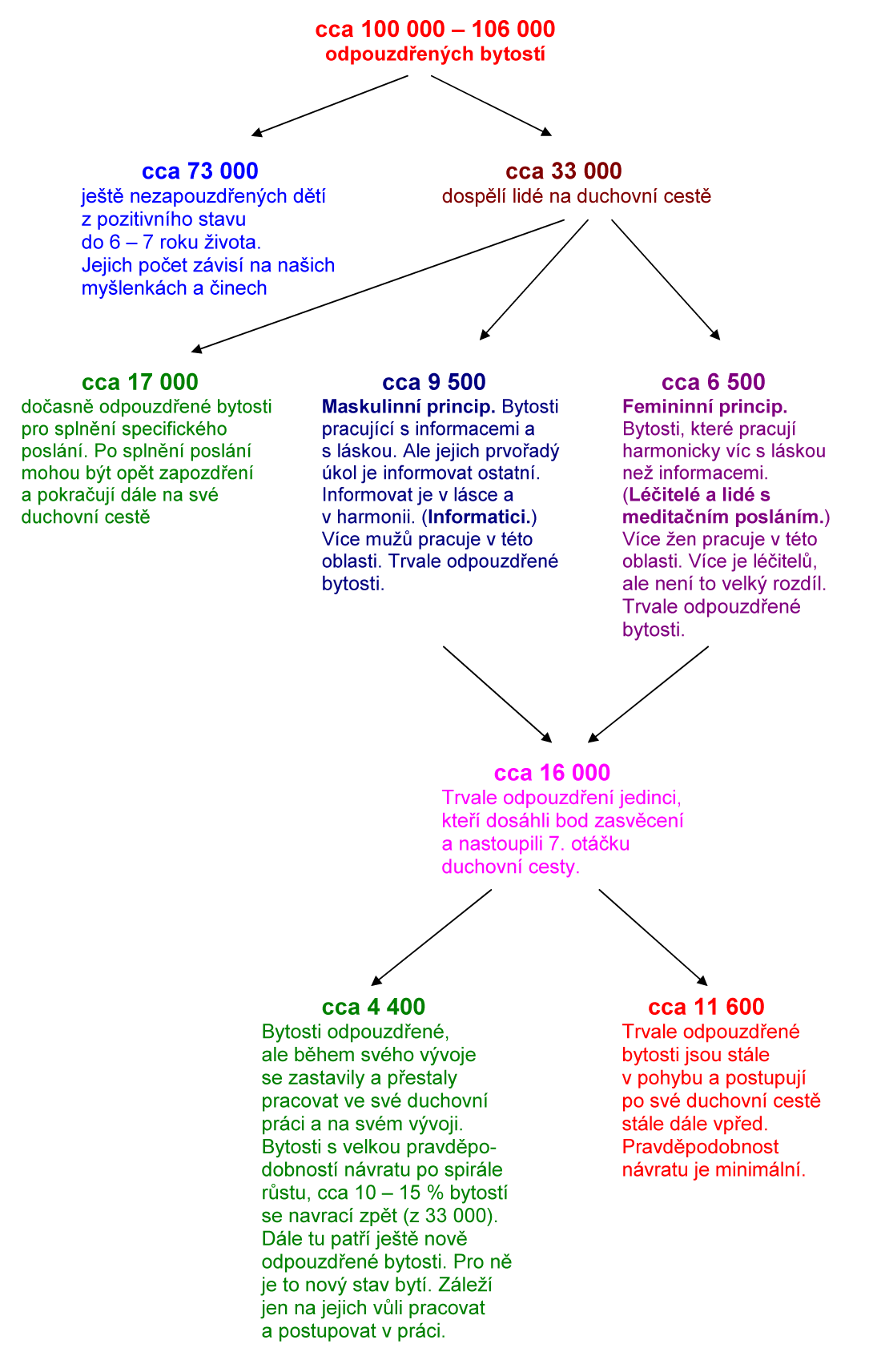 Každá bytosť má možnosť a potenciál z tohto stavu sa dostať pokiaľ si to zvolí (slobodná voľba). Ciest je viacero, mnoho, ale všetky majú jedno podstatné a to LÁSKU, pravú lásku. A láska je Pán Ježiš Kristus náš jediný spasiteľ. Stav hore opísaný je približná realita bytosti spiacej, teda na východzom bode Duchovnej cesty. Ak sa rozhodne bytosť na návrat domov do Pravého Stvorenia a bude naplnená vierouStvoriteľovi Prvotnému Všetkého a Všetkých a bude vyžarovať láskužiť lásku, postupne touto svojou duchovnou prácou bude stúpať po ceste domov a oslobodzovať takto a za pomoci Pána Ježiša Kristusa svojho Duchadušu.