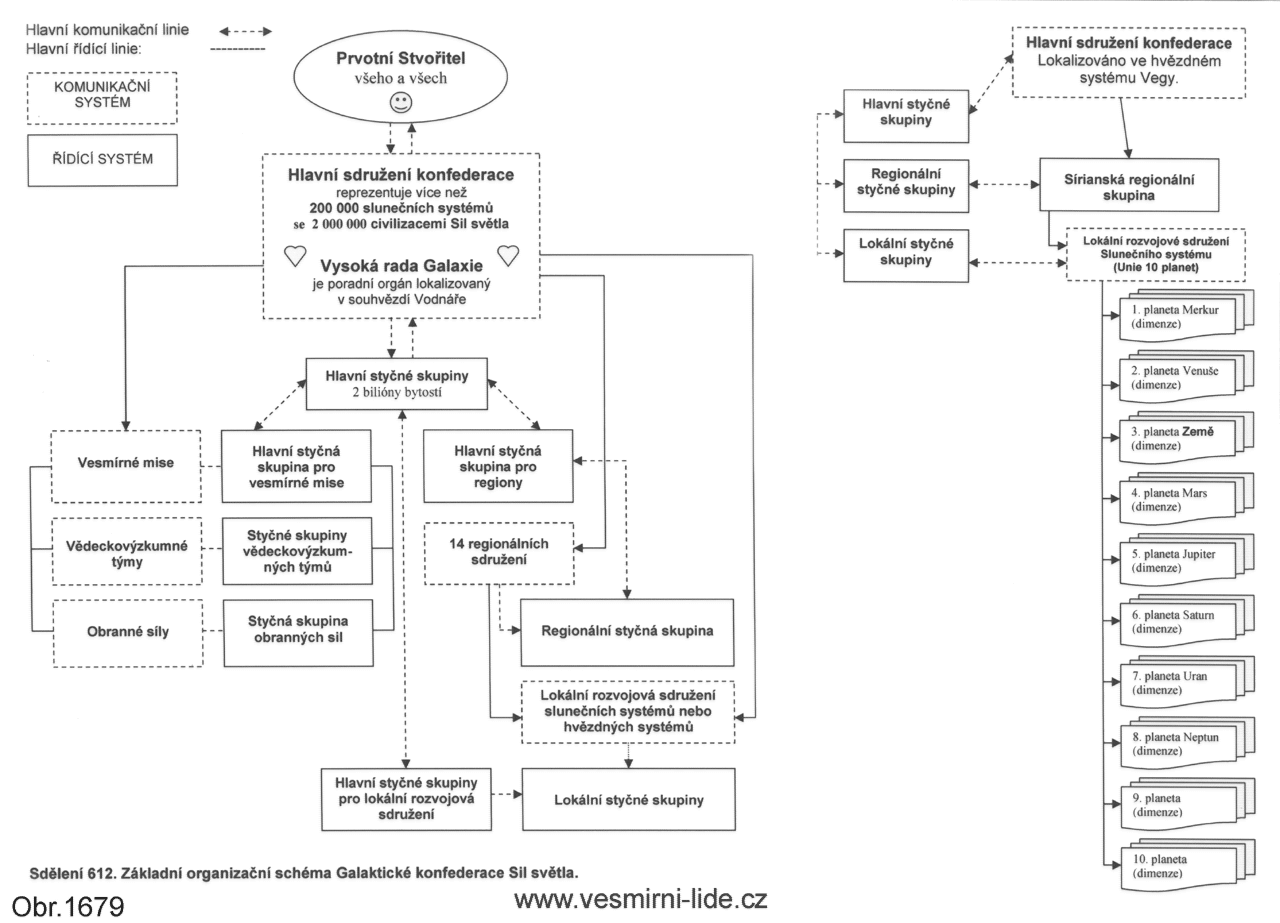 612. Základní organizační schéma Galaktické konfederace Sil světla. (Zpracoval Ivo A. Benda.)